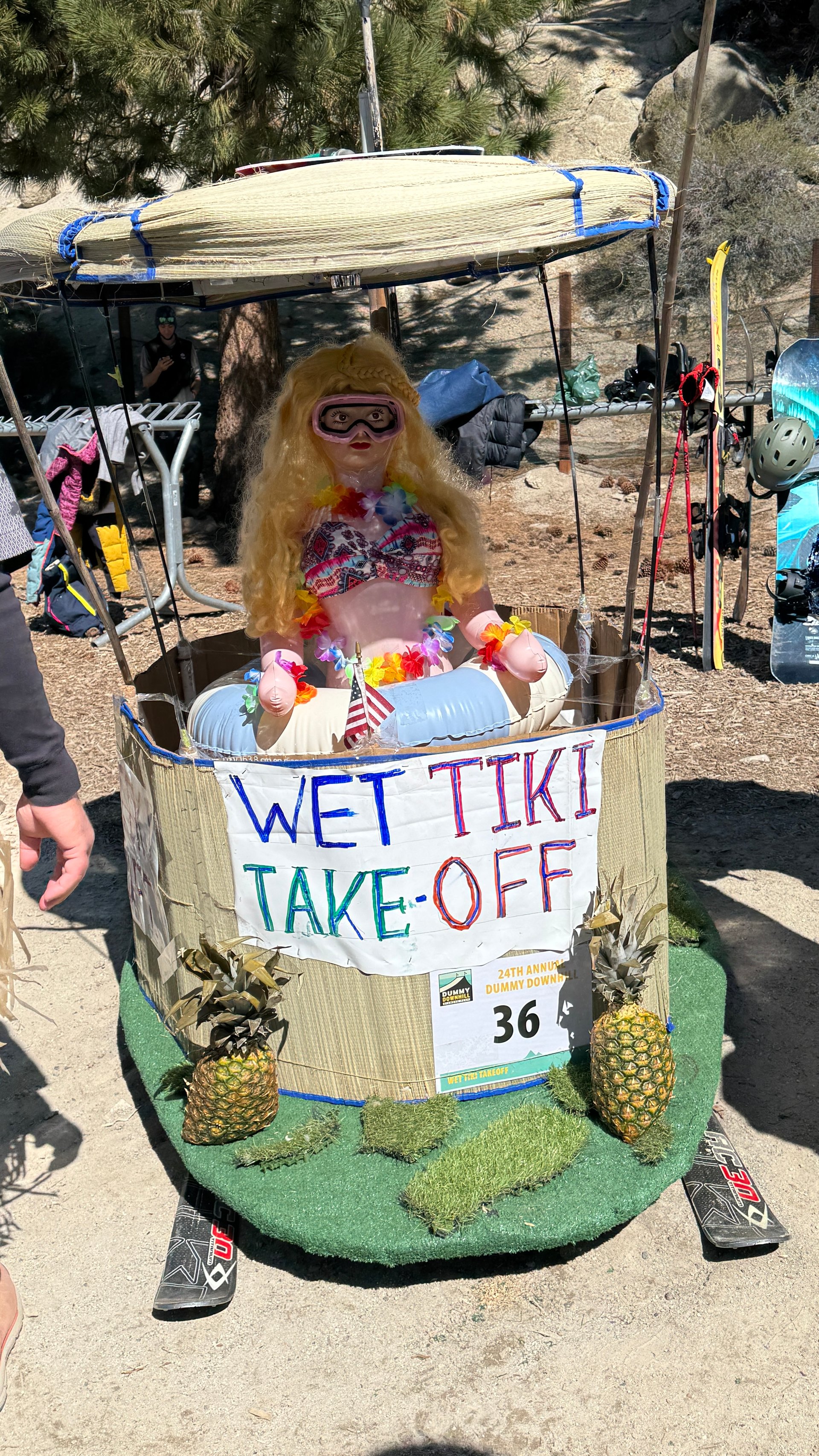 This year’s entries reflected an impressive range of imagination and execution. From structurally ambitious builds to highly stylized creations, each dummy carried its own personality, and its own trajectory once airborne. What continues to set this event apart is the way the community’s creativity comes fully to life: designs ranged from a cleverly crafted bear-themed outhouse to a fully imagined tiki bar, alongside playful tributes to this year’s winter conditions. It’s this blend of ingenuity, humor, and local character that makes the Dummy Downhill as entertaining to watch as it is meaningful to the community.