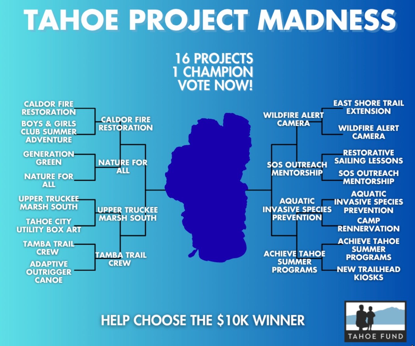The Tahoe Fund has advanced its Tahoe Project Madness campaign into Round Two, where public voting will determine which project receives an additional $10,000 grant. More than 1,000 votes in the opening round narrowed the field to eight initiatives focused on forest restoration, water quality, recreation access, and wildfire resilience.